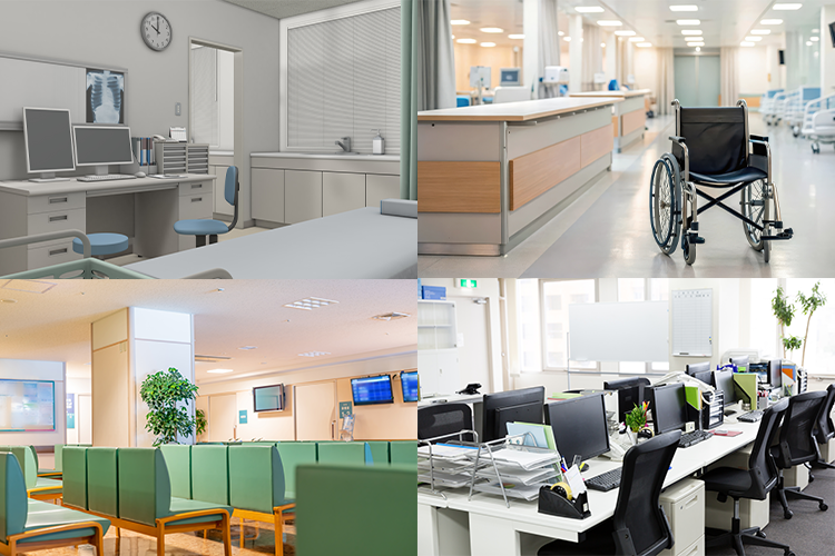 病院から出る「医療機器、ストレッチャー、ベッド、診察台、車ソファー、待合室のソファー」、事務所から出る「事務机、イス、パソコン、プリンター、収納棚、カルテ等の機密文書」など、全て対象となります。